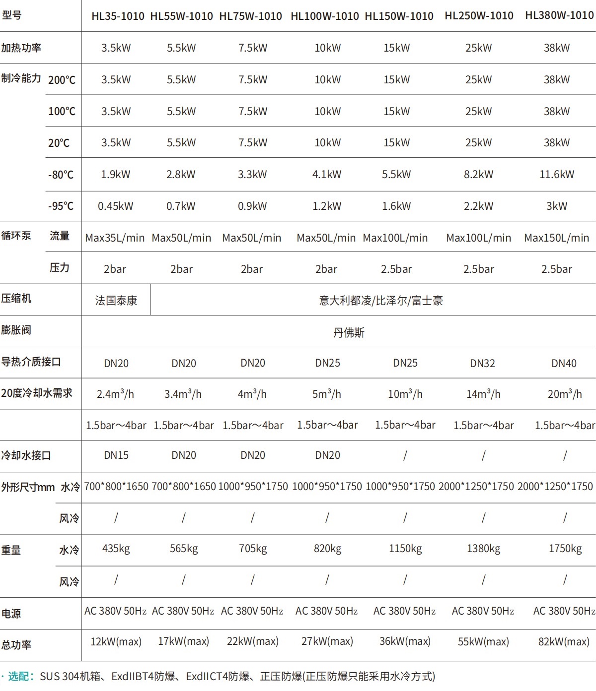 型號加熱功率制冷能力循環(huán)泵壓縮機膨脹閥導熱介質接口20度冷卻水需求冷卻水接口外形尺寸mm重量電源總功率